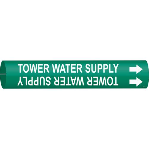 “Tower Water Supply” Pipe Marker – Plastic, White on Green, 1-1/2″ – 2-3/8″, 7/8″, 7/8″, 3/4″, English, Snap-On