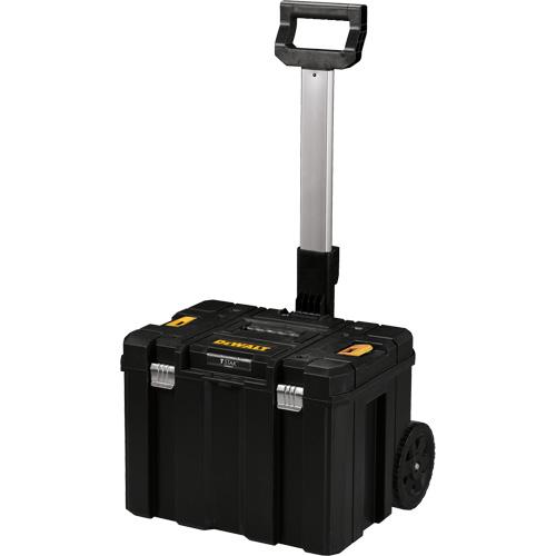 - Large volume storage tool box with durable 7" wheels