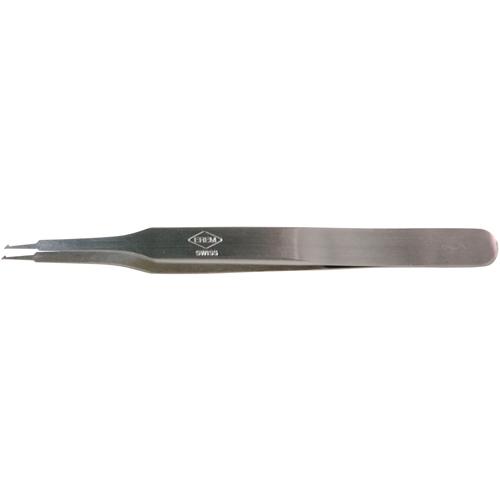 • Description: Special stainless steel, anti-glare finish, non-magnetic. SMD tweezers with angled head and blunt edges to avoid board damage. For handling small components, mounting on SMD boards, hybrids IC's, watch hands, etc.