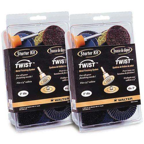 - Includes: (1) TWIST™ Backing Pad, (1) TWIST™ 40 grit flap disc, (1) TWIST™ 80 grit flap disc, (3) TWIST™ TOPCUT 36 grit sanding discs, (3) TWIST™ TOPCUT 50 grit sanding discs, (3) TWIST™ TOPCUT 60 grit sanding discs, (3) TWIST™ TOPCUT 120 grit sanding discs, (3) TWIST™ BLENDEX™ coarse conditioning discs, (3) TWIST™ BLENDEX™ super fine conditioning discs, (3) TWIST™ BLENDEX™ medium conditioning discs, (3) TWIST™ BLENDEX™ fine conditioning discs, and (1) FX™ extra-coarse surface cleaning disc, (3) TWIST™ TOPCUT™ 80 grit sanding discs