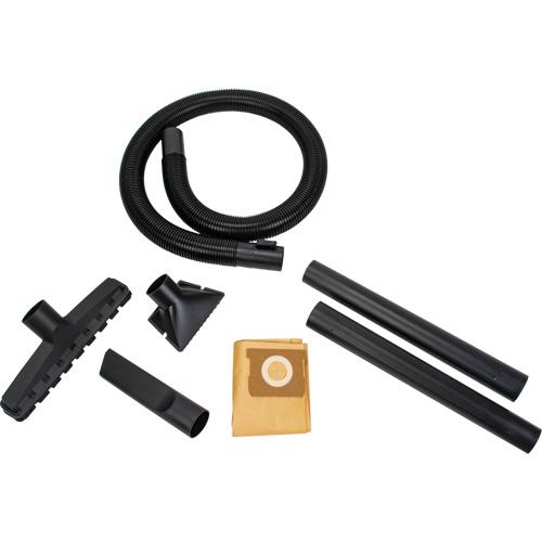 - Accessories include: 2 1/2“x 6' hose, two extension wands, crevice nozzle, utility nozzle, floor brush, cartridge filter and dust bag