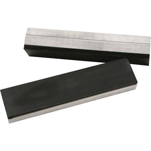 - Caps are constructed from a hardened aluminum alloy with two built-in circular permanent magnets on the back side which hold the product securely to the vise