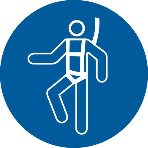 Wear a Safety Harness ISO Mandatory Safety Labels – Vinyl, 4″, 4″, Adhesive, Pictogram, Personal Protection, Wear Safety Harness Pictogram