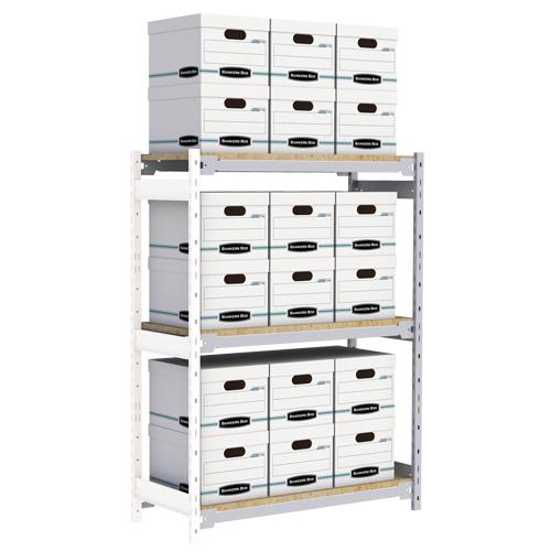Wide Span Record Storage Shelving – Add-On, 3, 1340 lbs., 18″, 32″, 60″, 42″, Steel, Grey, 18, White, White corrugated fibreboard