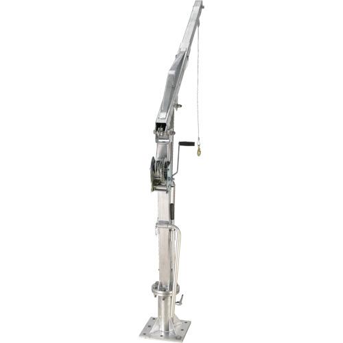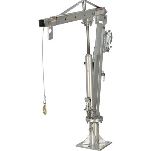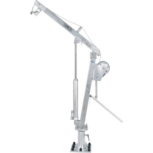 - Telescopic boom design with manual hydraulic hand pump to pivot boom up and down