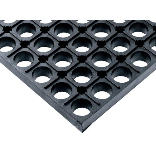 - Angled drainage holes and underside knobs allow debris and fluids to flow through