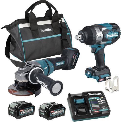 | Includes | 40Vmax XGT Brushless 3/4"Impact Wrench w/Friction Ring (TW001GZ), 40Vmax XGT Brushless 5" Angle Grinder w/Paddle Switch (GA050GZ), (2) 40V max XGT 4.0Ah Li-Ion Battery (BL4040), Rapid Charger (DC40RA), Tool Bag (832319-7) |